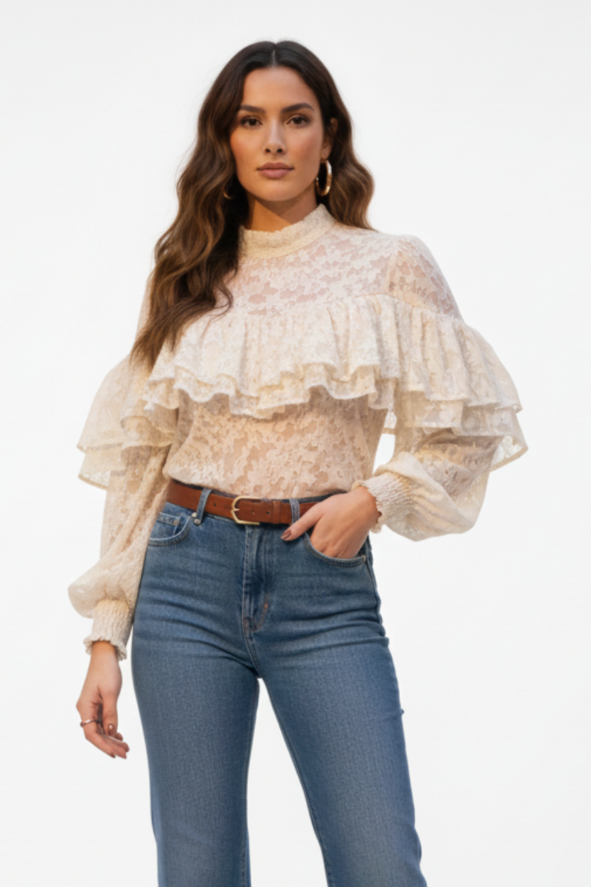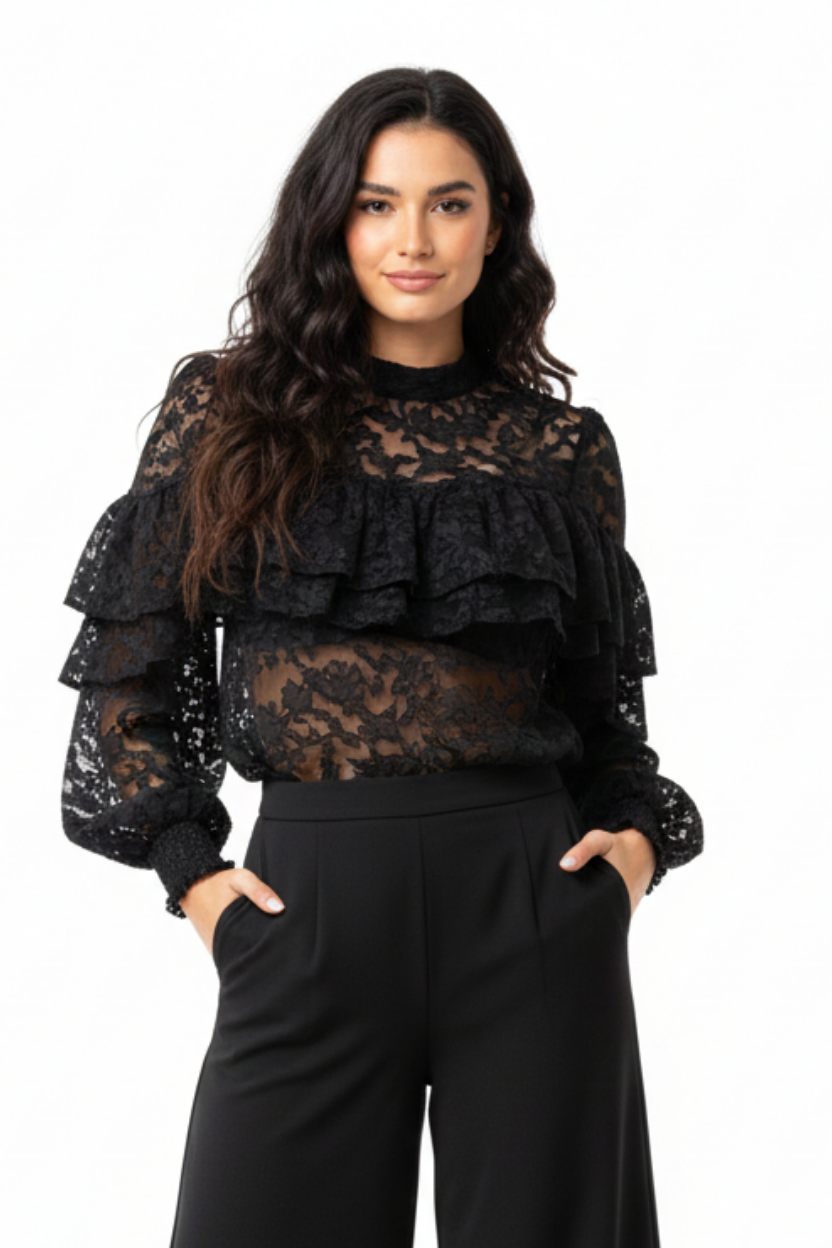 BLUSA TIPO ENCAJE CON OLANES