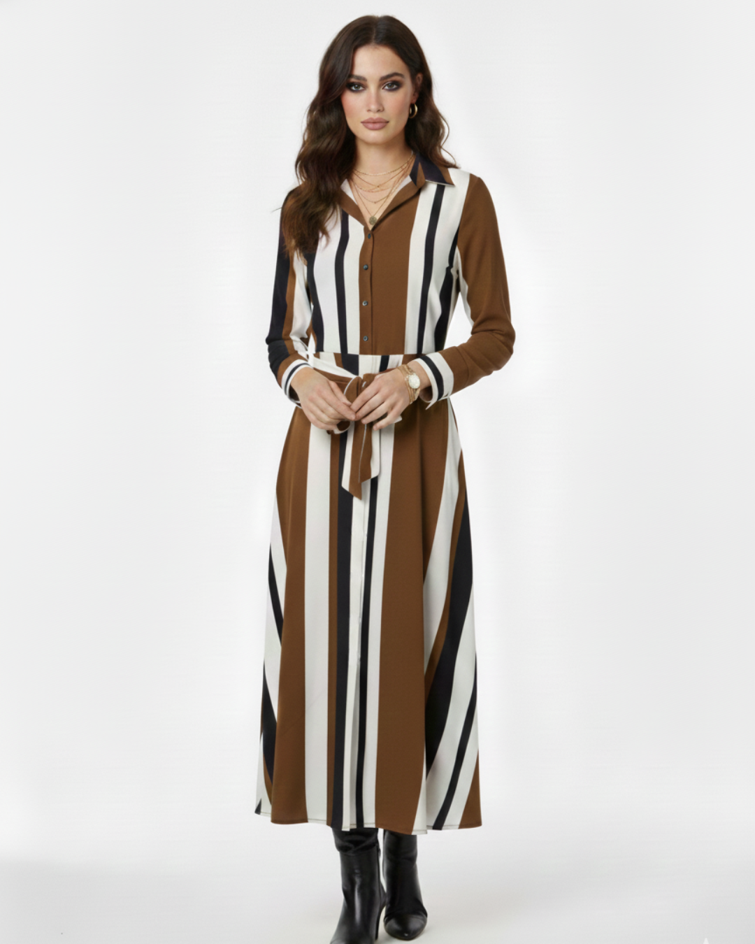 Cinturón del mismo tejido lazado a la cintura, lo que permite entallar la prenda y dar forma.